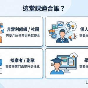 • 無痛實作: 不用寫程式,套用顧問驗證過的建站 SOP,避開新手地雷。